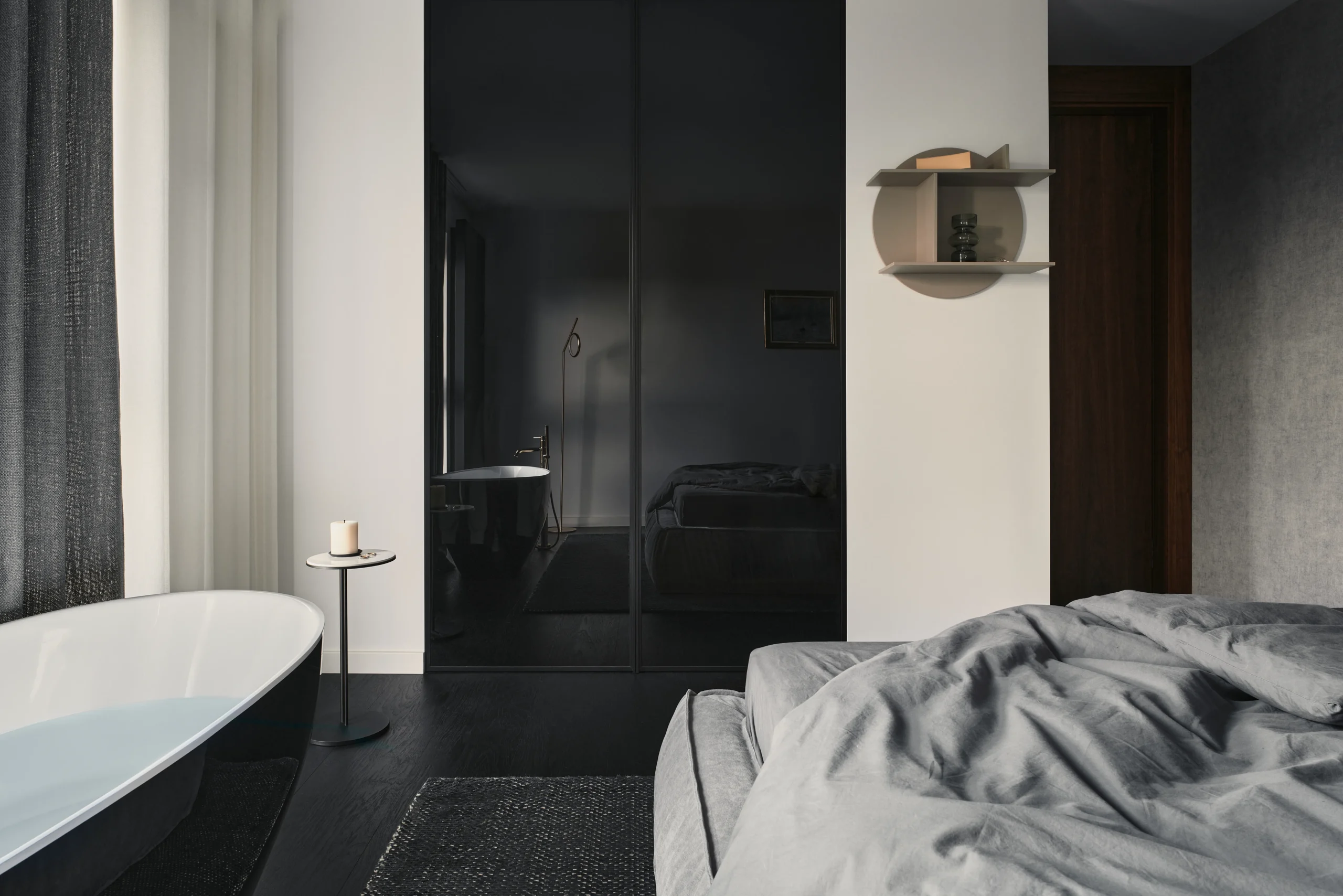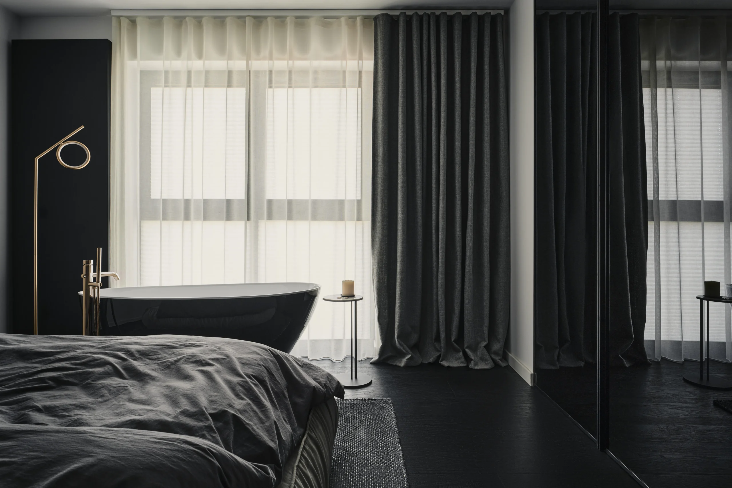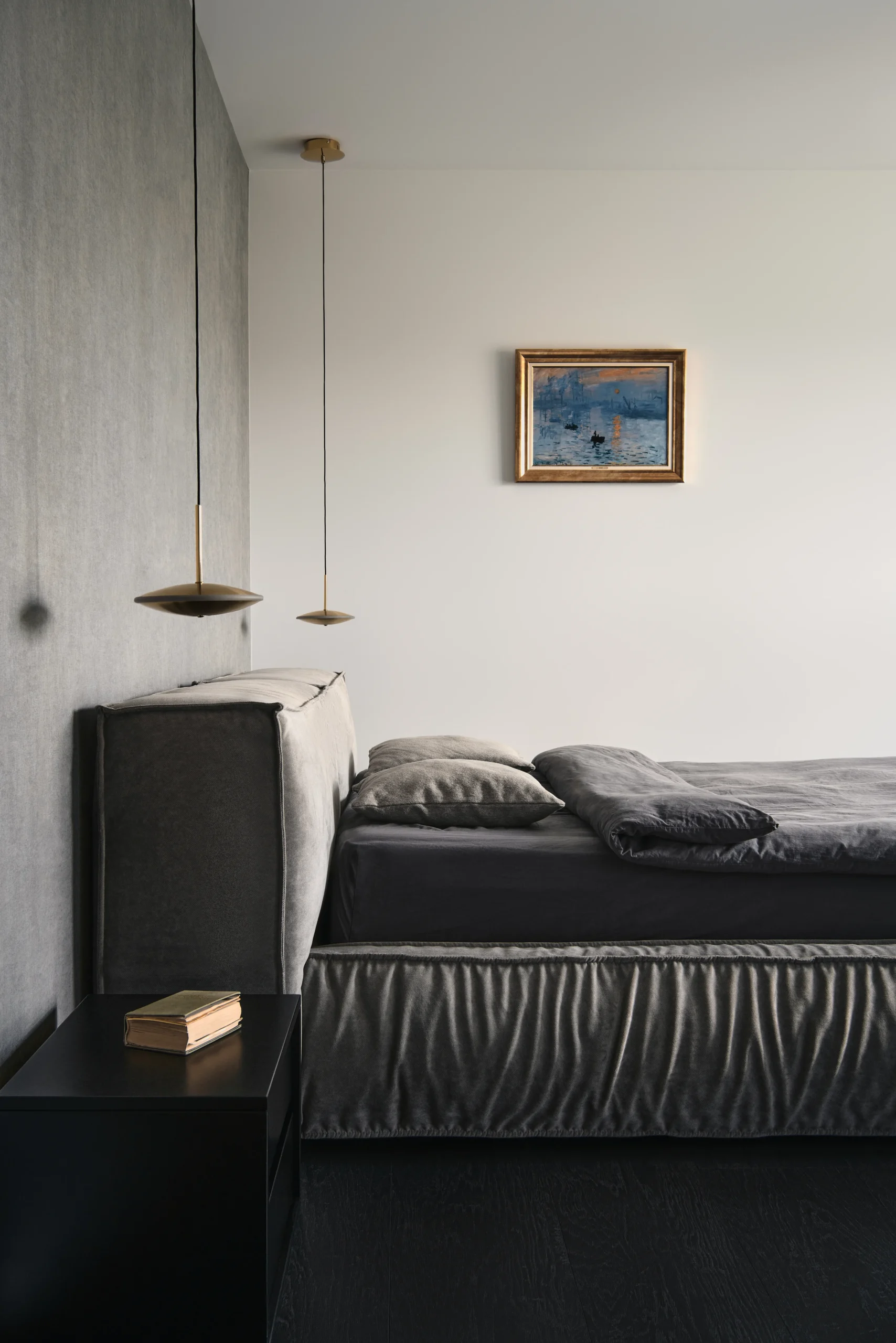 Projekt opiera się na stonowanej palecie kolorów, w której dominują odcienie bieli, szarości i czerni, co wprowadza spokój i równowagę do przestrzeni. Zastosowane materiały, takie jak drewno, kamień czy metal, tworzą subtelną elegancję, jednocześnie zachowując przyjazną atmosferę. Wnętrze zostało zaprojektowane z dbałością o detale, co nadaje mu ponadczasowy charakter.